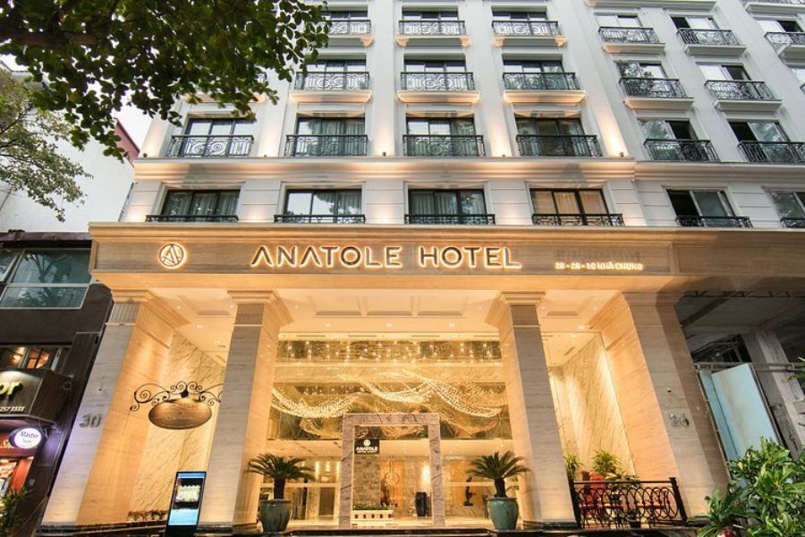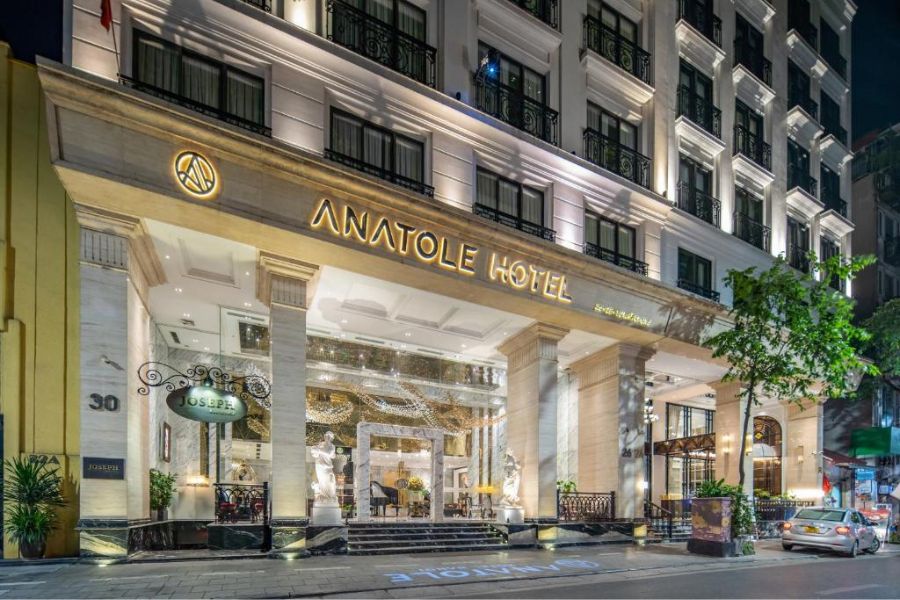 Anatole Hotel Hanoi presents timeless sophistication of Hanoi’s historic Old Quarter. This luxurious boutique hotel showcases French colonial architecture with marble interiors, crystal chandeliers, and opulent furnishings throughout.