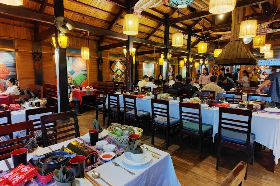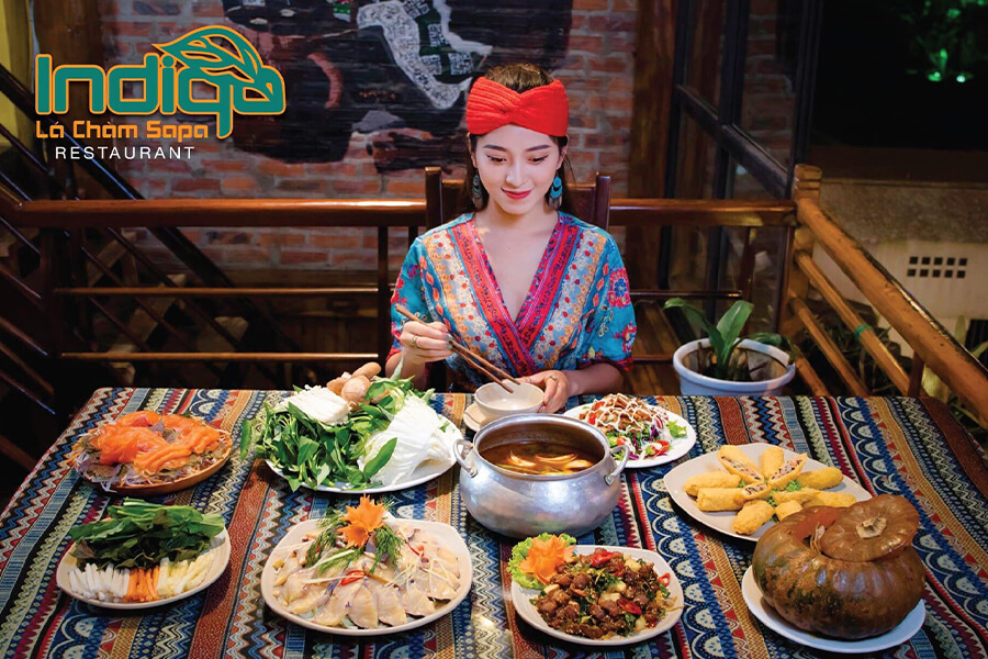Indigo Restaurant Sapa is one of the most atmospheric dining spots in Sapa, where Northwest Vietnamese culture and cuisine come together in a truly memorable way. Located at 23 Dong Loi Street in the heart of town, the restaurant offers breathtaking views of Fansipan Mountain and the Muong Hoa Valley, allowing guests to enjoy a meal while admiring Sapa’s iconic landscapes.