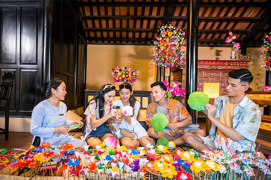 Today, join us on an excursion to Cam Thanh village, being a fisherman at Cam Thanh water coconut village tour you will enjoy experiences from learning traditional fishing techniques and how to row unique Vietnamese bamboo basket boat, fishing and catch the crabs, coconut mussel while exploring the now tranquil coconut-palm flanked waterways of a past war. Discover Hoi An ancient town, which was originally a Cham seaport but has been influenced down centuries by a myriad of traders from various cultures. There are plenty to see in this tranquil and delightful town, some of which are the famous Chinese Assembly Hall & Temples, Old houses & Japanese Covered Pagoda Bridge, Old house of Tan Ki, Sa Huynh Culture Museum. We visit these sights on an exciting walking tour past many low tiled houses scattered along the small streets and assembly halls which reflect the town’s multi-cultural past.