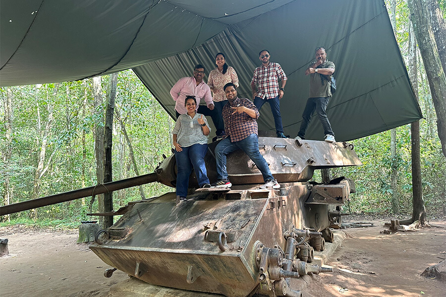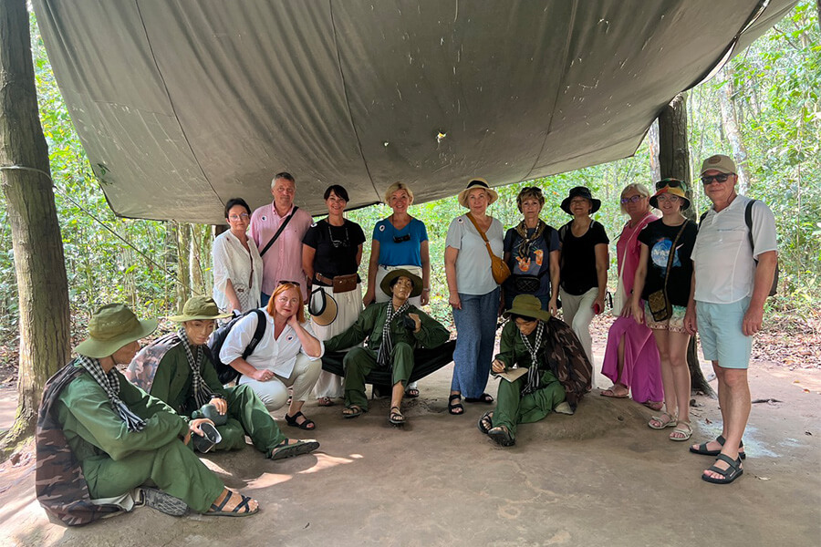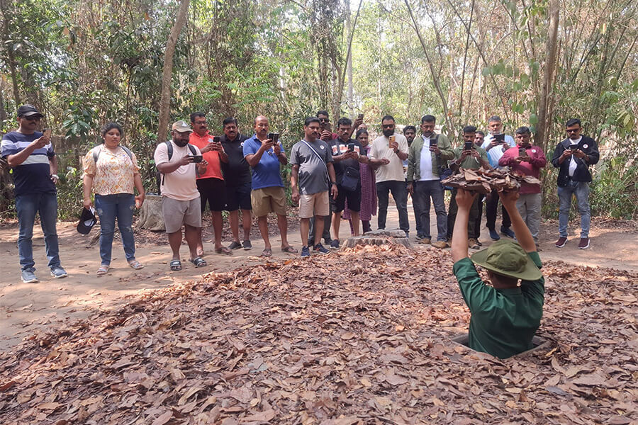 In the morning, depart at 8:00 AM for the Cu Chi Tunnels, a historic underground network used during wartime. Crawl through the narrow passageways, see an abandoned American tank, and witness the lasting impact of war through massive bomb craters.