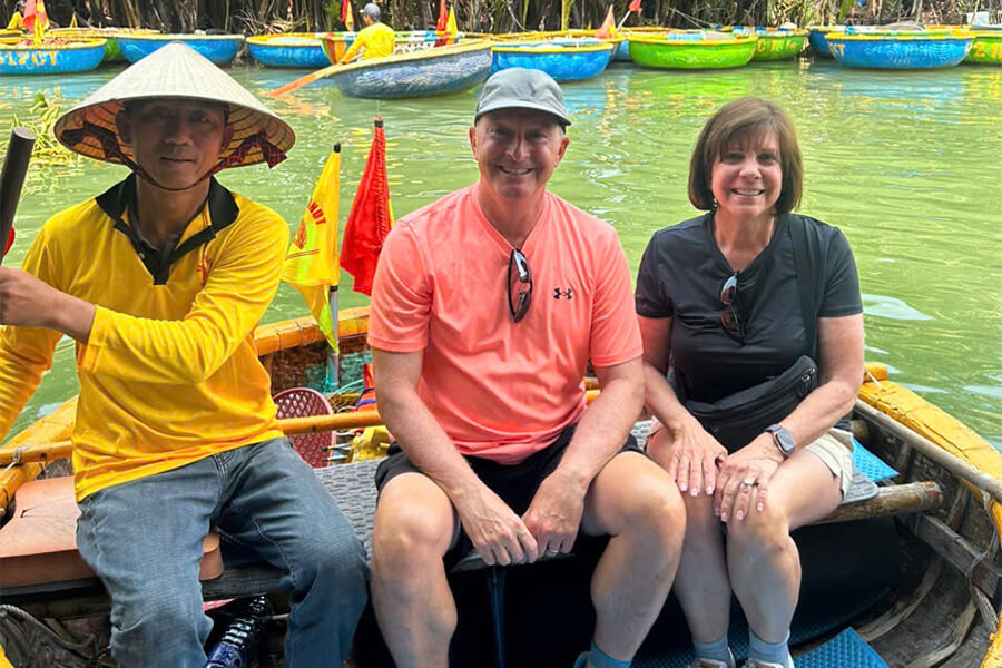 Today, join us on an excursion to Cam Thanh Village, where you will experience life as a fisherman at the Cam Thanh water coconut village, learning traditional fishing techniques and how to row a unique Vietnamese bamboo basket boat, fishing and catching crabs and coconut mussels while exploring the tranquil coconut-palm-flanked waterways shaped by wartime history.