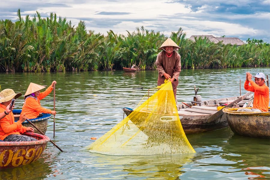 Breakfast at hotel, we transfer to Hoi An. Along the way, we visit the Marble Mountain – the five elements of the Universe (water, wood, air, fire and earth). Arrive in Hoi An, continue to Hoi An Coconut Village (also called Cam Thanh Coconut Village, Cam Thanh Water Coconut Village, or Cam Thanh Village) – a portion of Hoi An’s countryside 5 km east of the Old town. Around its hamlets, travelers can see historical buildings, tranquil rice paddies, fishing nets, households producing handicrafts and above all, lush palm groves.
