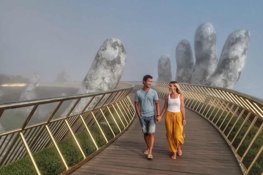 After finishing the first cable car, you will visit The Golden Hands Bridge - which has the most exotic structure and also the world's most prominent pedestrian bridges highlighted by the British Guard newspaper, France wine cellar, Le Jardin D’amourn (consists of 9 gardens), Linh Ung pagoda.