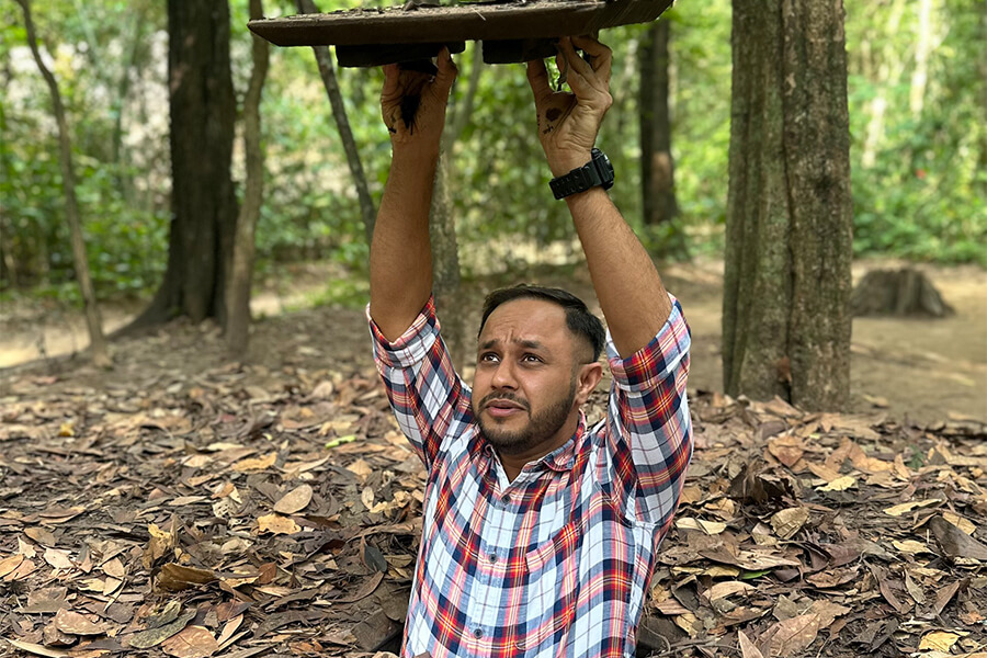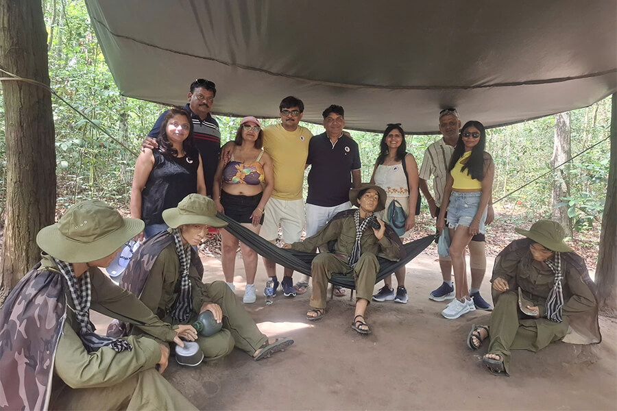 In the morning, drive out of the city to the legendary Cu Chi Tunnels, an underground network used during the war. Explore hidden trapdoors, narrow passageways, and remnants of wartime survival. For those interested, there is also the option to test real weapons at the firing range (extra cost, approx. USD 3 per bullet).