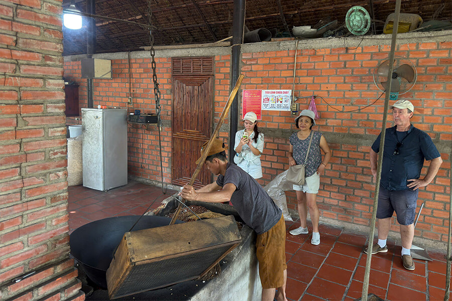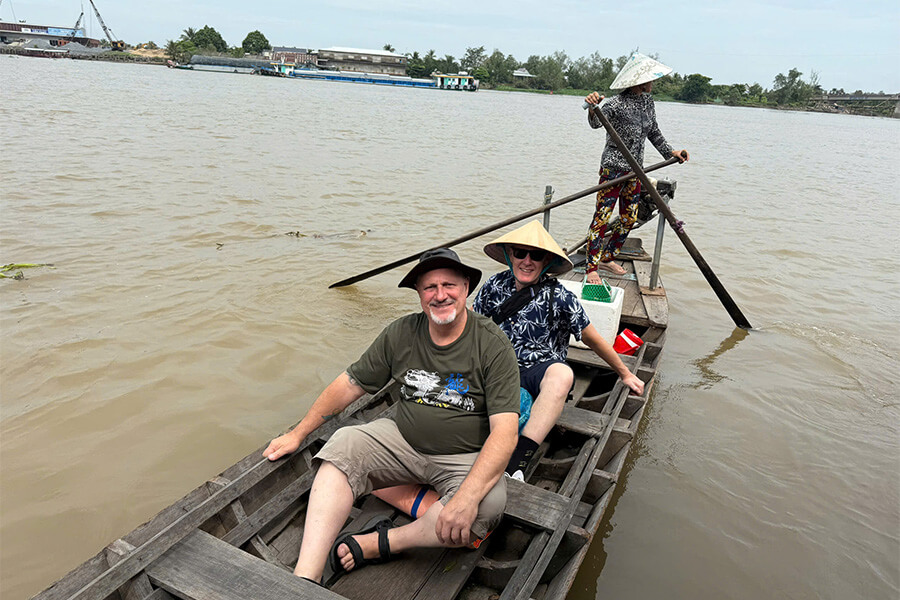 Today, we will drive to the Mekong Delta and take the boat ride on small canals to visit some local cottage industries, fruit orchards, a coconut candy workshop, a honeybee farm, take a sampan ride on palm-shaded creeks, try a taste of seasonal fruit, honey tea, and enjoy a performance of traditional Southern singing. Later of the day, we return to Ho Chi Minh City for overnight stay.