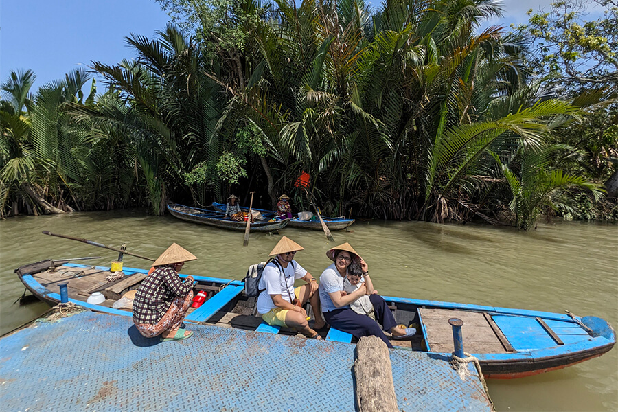 Later, ride a sampan through palm-shaded canals before returning to Ho Chi Minh City.