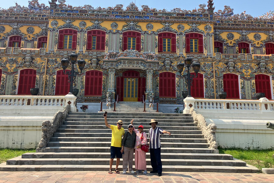 After a short rest, explore the Imperial Citadel, the former royal palace of the Nguyen Dynasty, with its imposing gates, palaces, and temples. Continue to the Royal Fine Arts Museum, home to treasures from Vietnam’s last feudal dynasty, before strolling through Dong Ba Market, famous for handicrafts and local specialties.