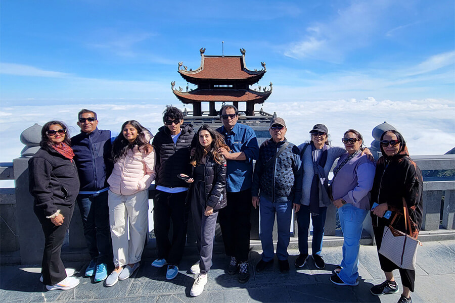 After breakfast, walk to the elegant French-style Sun Plaza, where you board the Mountain Train for a short ride through valleys and tunnels leading to the Cable Car Station. From here, a 20-minute cable car journey takes you up Fansipan Mountain (3,143 m), the highest peak in Indochina. The ride offers breathtaking views of the Hoang Lien Son Range and lush forests. To reach the summit, climb 636 stone steps and enjoy the once-in-a-lifetime panorama from the “Roof of Indochina”. Descend by cable car and return to Sapa by Mountain Train. Lunch will be served at an Indian restaurant, after which you have free time to stroll through town, visit the Stone Church, or relax with coffee overlooking the mountains. Overnight in Sapa.
