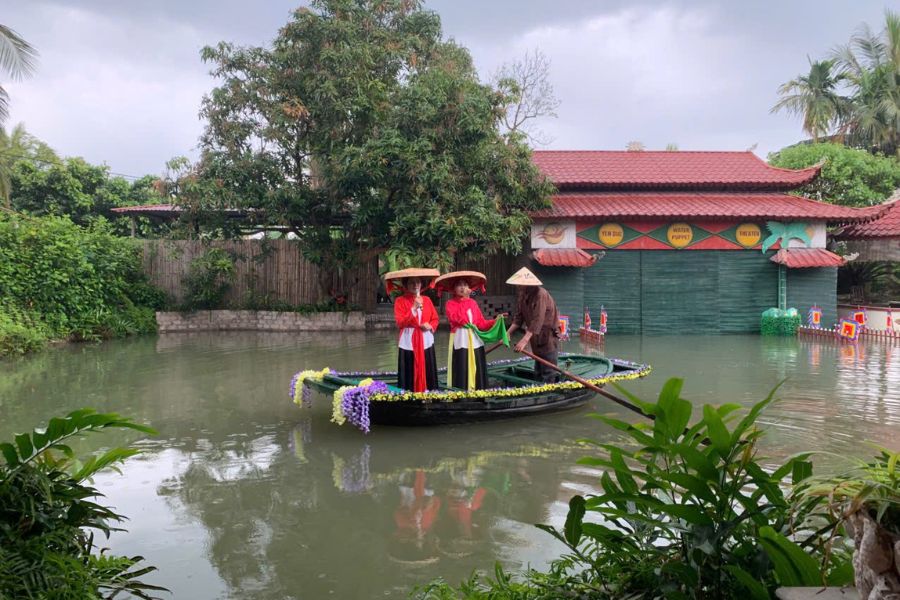 In the morning, depart from your hotel for the peaceful town of My Tho, the gateway to the Mekong Delta. Begin with a visit to Vinh Trang Pagoda, an impressive Buddhist temple blending Vietnamese, Khmer, and European architectural styles. Continue with a scenic boat trip along the Mekong River, where you will stop to visit local homes and orchards, a coconut candy workshop, and a honeybee farm. Enjoy a sampan ride through palm-shaded canals, taste tropical fruits and honey tea, and experience a traditional Southern folk music performance. In the late afternoon, return to Ho Chi Minh City for an overnight stay. Overnight in Ho Chi Minh City.